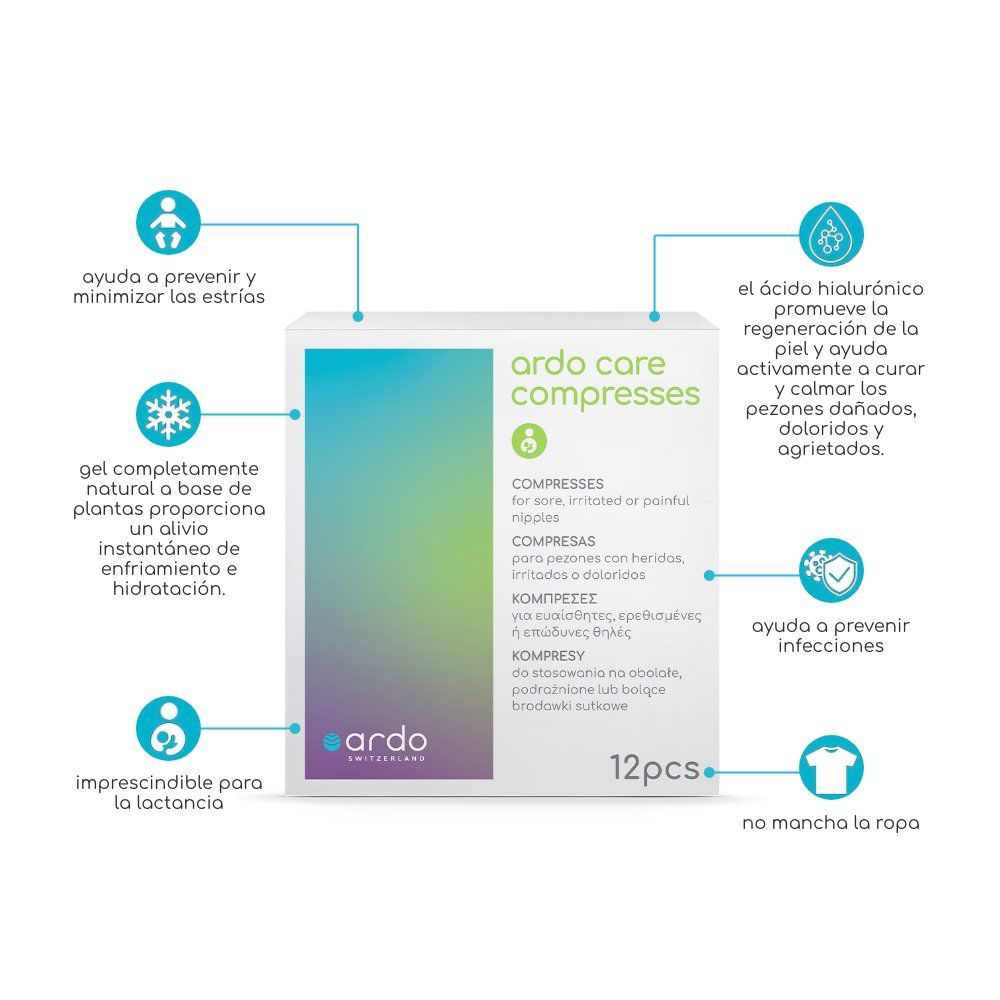 ¿Dolor al amamantar? Cuidado natural intensivo para pezones adoloridos, irritados y agrietados, eso es lo que te entregan las Compresas Ardo Care. Están hechas con un gel 100% vegano que humecta los pezones secos dejando un efecto de frescura que entrega alivio inmediato.