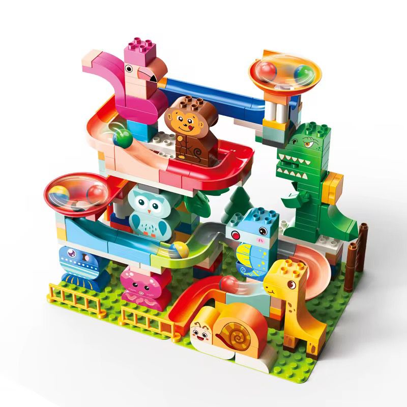 Un set de bloques que permite armar toboganes y escenarios con temática de animales. Los niños podrán construir, jugar y desarrollar su imaginación de forma divertida.