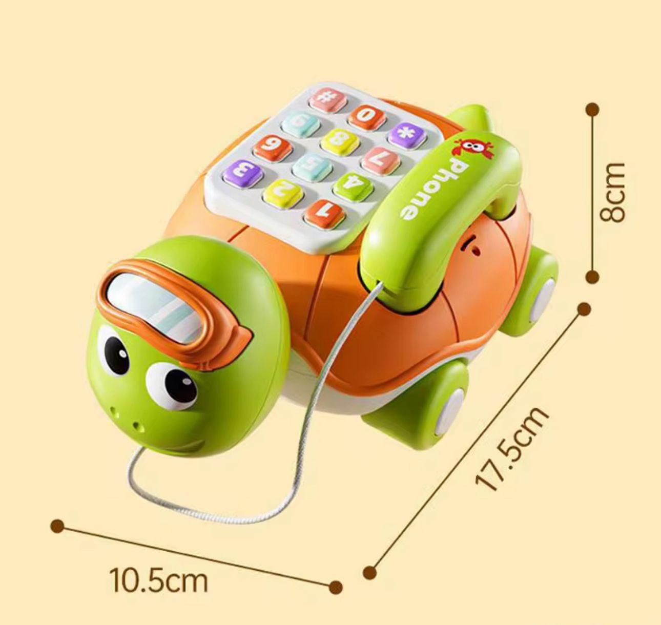 Fabricado en plástico duradero, su diseño ligero y atractivo facilita que los niños lo arrastren mientras exploran su entorno. La tortuga emite melodías agradables que acompañan cada paso, fomentando la coordinación y el ritmo en los más pequeños.
