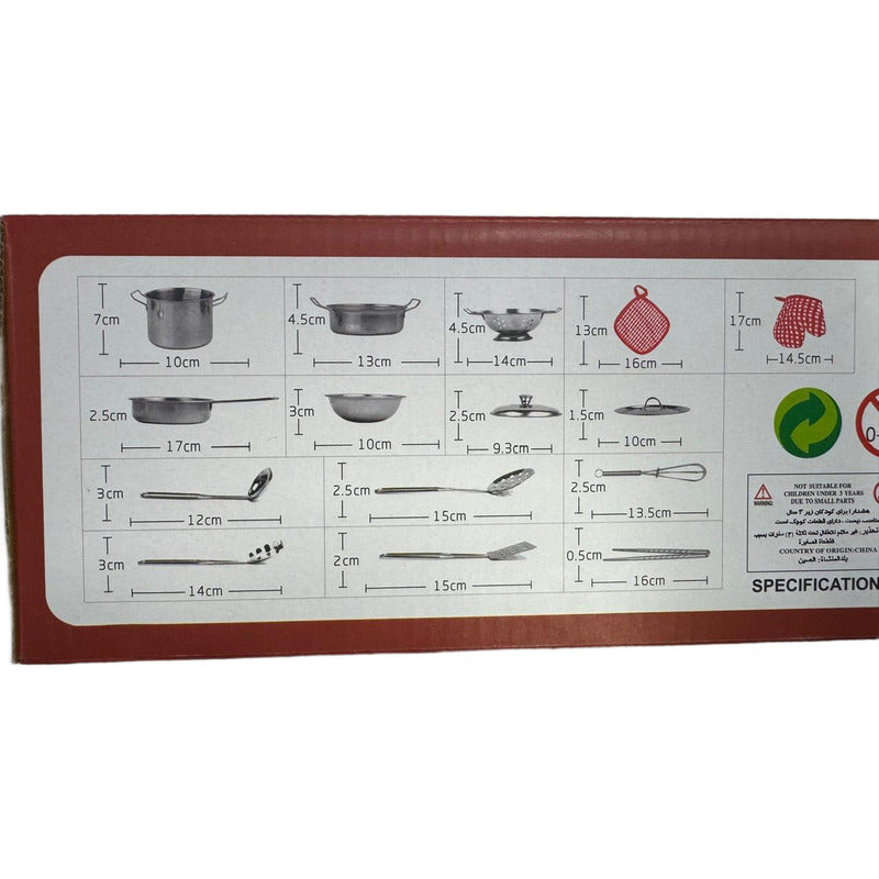 Material de Alta Calidad: Fabricado en acero inoxidable duradero y resistente, garantizando seguridad y una larga vida útil. Incluye Todo lo Necesario: El set contiene varias ollas, sartenes, utensilios de cocina, ofreciendo una experiencia completa de cocina. Diseño Realista: Las ollas y utensilios son una réplica exacta de los de una cocina real, lo que hace que los niños se sientan como verdaderos chefs. Seguridad ante Todo: Todos los bordes están suavemente acabados para evitar cortes o accidentes, y el material es seguro y no tóxico. Fácil de Limpiar: Todas las piezas se pueden lavar fácilmente, manteniendo siempre el set limpio y listo para la próxima sesión de juego. Beneficios: Estimula la Imaginación: Fomenta el juego creativo y de roles, permitiendo que los niños imiten a sus padres en la cocina. Desarrollo de Habilidades: Ayuda a desarrollar la coordinación mano-ojo, habilidades motoras finas y el aprendizaje sobre la cocina. Diversión Garantizada: Ideal para jugar solo o con amigos, manteniendo a los niños entretenidos durante horas.