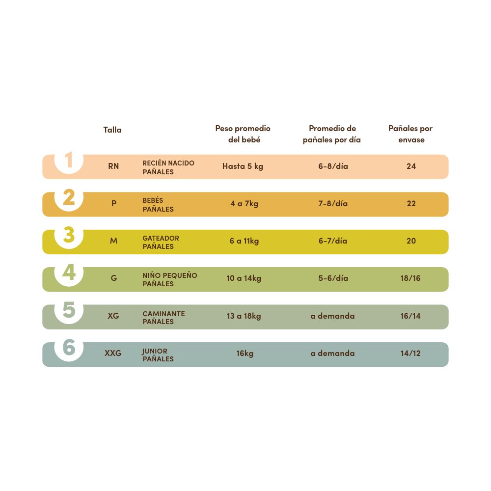 -Fabricado con un 85% de materiales de origen vegetal - 0% cloro, fragancias, látex, parabenos, ftalatos o blanqueadores - Capa trasera respirable hecha con fibra de bambú 100% biodegradable Más de 12 horas de sequedad y protección contra la dermatitis del pañal Indicador de humedad de origen vegetal que muestra cuánto ha absorbido el pañal Tinta apta para contacto con alimentos, tanto en el producto como en el empaque Apto para todo tipo de piel y calificado dermatológicamente como “excelente” Pulpa de madera natural 100% de EE.UU. Componentes del núcleo envueltos con papel tisú Barreras anti fugas 3D que previenen filtraciones y derrames laterales ¡las fugas se detienen aquí! Almohadilla superabsorbente, sostenible y compostable Cintura ultrasuave para un ajuste cómodo y seguro en todo momento Puños suaves en las piernas hechos 100% de fibra de bambú Hoja resistente al agua, hecha de almidón de maíz sostenibles.