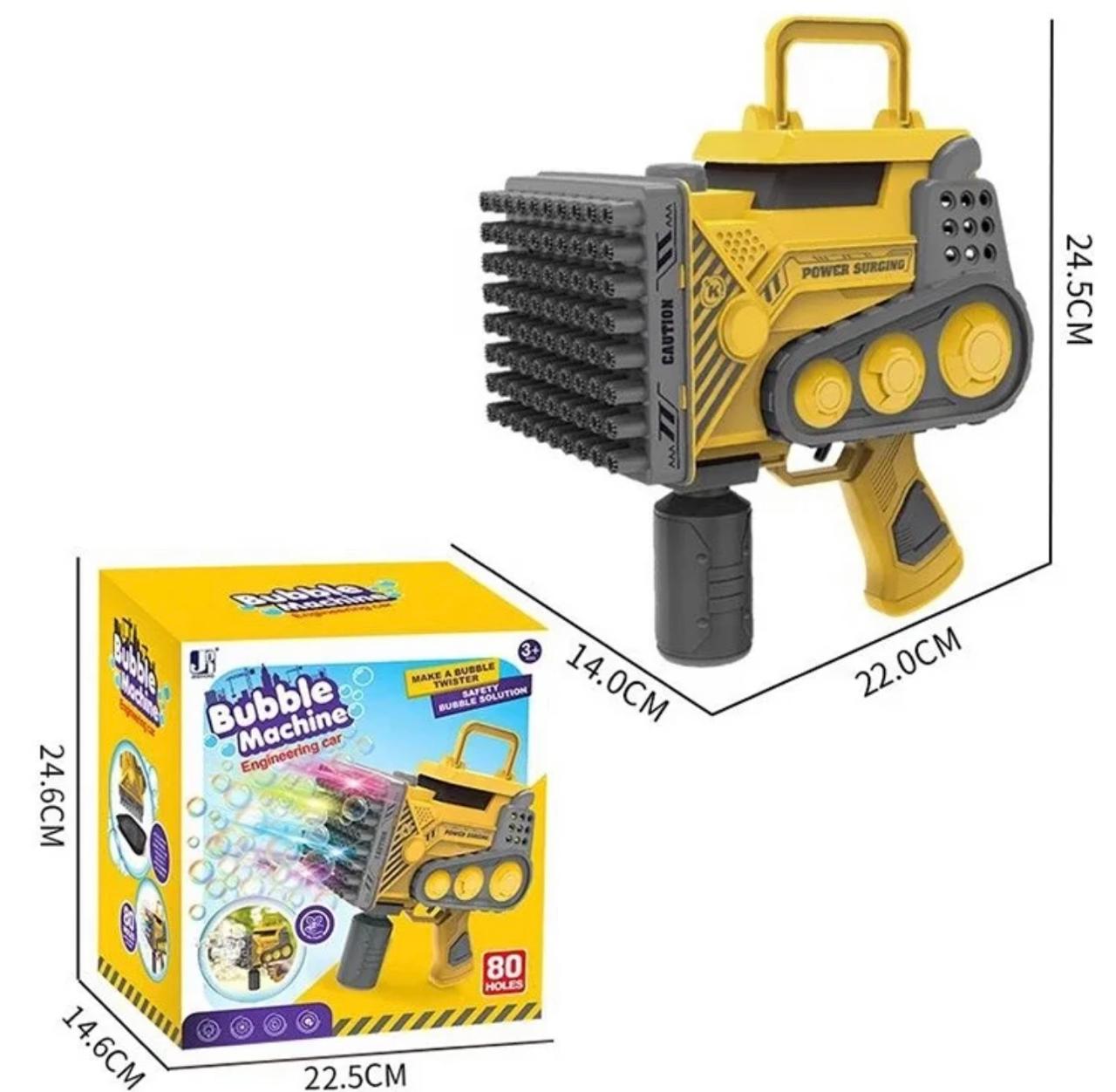 Fabricada en plástico resistente, esta pistola es fácil de manejar y segura para los niños. Incluye líquido para burbujas y pilas recargables, lo que garantiza que la diversión nunca se detenga. Además, cuenta con luces y sonidos que hacen que cada burbuja que lanza sea aún más emocionante.